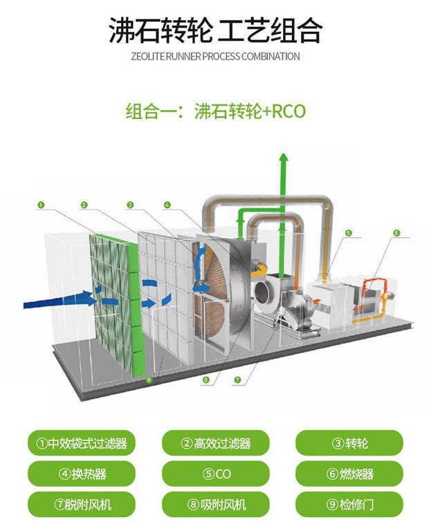 沸石轉輪濃縮裝置一體機多種組合方案介紹